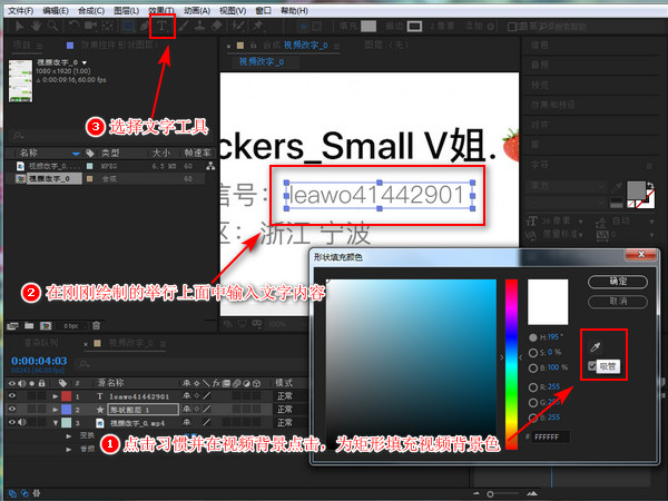 点击填充在打开的形状填充颜色页面中,点击【吸管】,在视频背景中点击,为矩形填充背景色,比如小编这里的白色,就完全看不到原有的文字啦~接着点击文字工具,再在刚刚绘制的矩形上输入想要的文字内容。