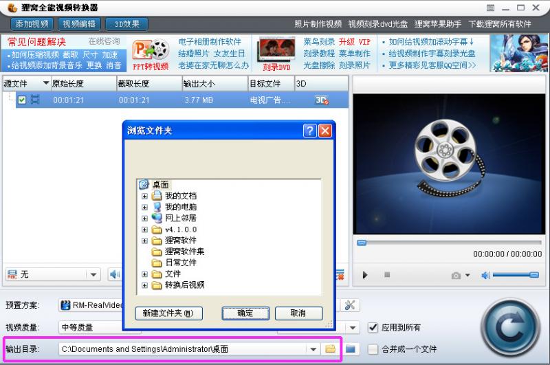 4.参数配置好之后,现在来设置一下输出目录(视频转换成功之后存放的位置),如下图: