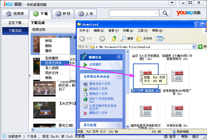上面就是利用爱酷在优酷上将flv电影下载的方法了,这是在视频网站上直接下载flv格式的简单方法。