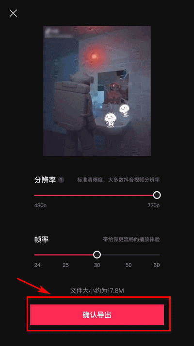 点击导出就会出现下面页面。选择分辨率以及帧率按个人需求就可以了。再点击确定导出稍等片刻就完成了。