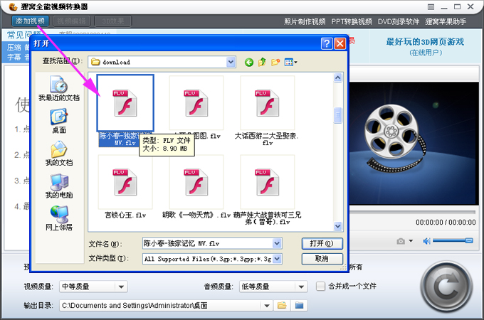 利用爱酷现在完成视频短片之后,接着就是利用狸窝全能视频转换器开始将优酷下载的FLV格式文件转换成MP3格式啦。